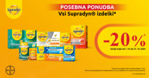 Spoštovane stranke obveščamo, da smo cene izbranih izdelkov Supradyn v mesecu oktobru 2024 znižali za 20%.