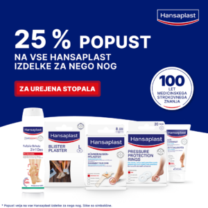 Obiščite naše lekarne med 14.10. in 14.11.2024 in si priskrbite izdelke Hansaplast za nego nog po 25% nižji ceni.