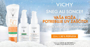 Spoštovane stranke obveščamo, da med 01.01. in 15.01.2025 poteka znižanje cen izdelkov za zaščito obraza pred soncem Vichy Capital Soleil. Obiščite naše lekarne in si priskrbite izdelke Vichy Capital Soleil po 30% nižji ceni.