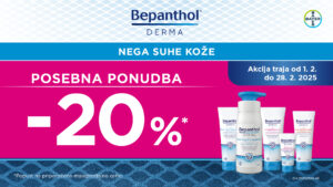Spoštovane stranke obveščamo, da vam v mesecu februarju 2025 ob nakupu izdelkov Bepanthol Derma priznamo 20% popust.
