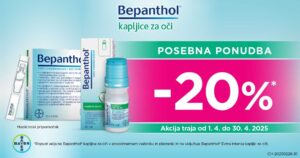 Spoštovane stranke obveščamo, da vam v mesecu aprilu 2025 ob nakupu Bepanthol kapljic za oči priznamo 20% popust.