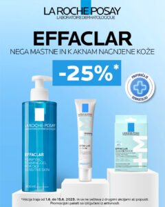 Spoštovane stranke obveščamo, da bo med 1.6. in 15.6.2025 potekalo znižanje izdelkov Effaclar proizvajalca LaRoche Posay. Obiščite naše lekarne in si priskrbite izdelke Effaclar po 25% nižji ceni.