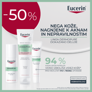 Spoštovane stranke obveščamo, da bo, od 2.6.2025 pa do razprodaje zalog, v naših lekarnah potekalo znižanje cen izdelkov iz Eucerinove linije Dermopure. Obiščite naše lekarne in si priskrbite izdelke Eucerin Dermopure po kar 50% nižji ceni.