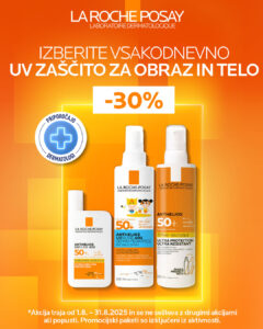 Obiščite naše lekarne med 1.8.in 31.8.2025 in si zagotovite izdelke iz linije LRP Anthelios po 30% nižji ceni.