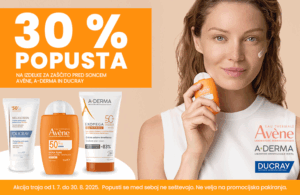 Spoštovane stranke obveščamo, da smo med 1.7. in 30.8.2025 znižali cene izdelkom iz sončne linije Avene, Ducray in A-derma za kar 30%. Obiščite naše lekarne in si priskrbite izdelke iz sončne linije Avene, Ducray in A-derma po 30% nižji ceni.