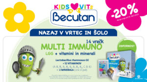 Spoštovane stranke obveščamo, da bo v mesecu septembru 2025 potekalo znižanje izdelkov Becutan Kids Vits Multi Immuno (za otroke od 3. leta dalje) . Obiščite naše lekarne in si priskrbite izdelke Becutan Kids Vits Multi Immuno po 20 % nižji ceni.