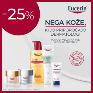 Privoščite svoji koži vrhunsko dermatološko nego z izdelki, ki jim zaupa stroka in uporabniki po vsem svetu. V omejenem času so vsi Eucerin izdelki na voljo 25 % ceneje – odlična priložnost za nakup svojih najljubših izdelkov ali preizkus novih!