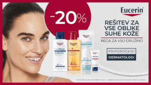 ✨ Popust 20 % velja na vse izdelke Eucerin UreaRepair, pH5, AtopicControl in Aquaphor od 10.11. do 24.11.2025 v vseh poslovalnicah Kraških lekarnah.